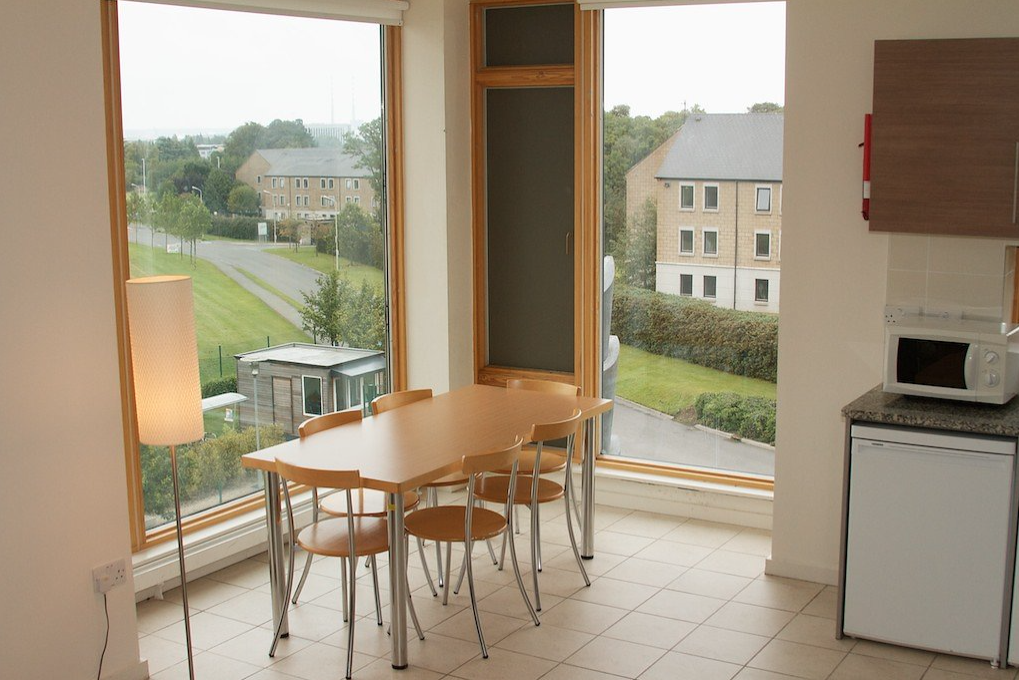 Gli alloggi sono all’interno del campus e organizzati in piccoli appartamenti con camere singole e bagno privato, oltre a un soggiorno comune per gli studenti.